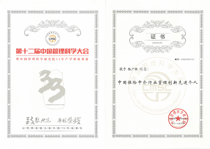 基力保险销售有限公司荣获第十二届中国管理科学家大会荣誉